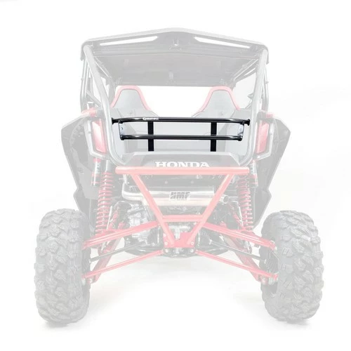 The HMF Rear Cargo Rack is a functional component that adds protection and versatility. Constructed from lightweight aluminum, the rear cargo rack acts as a tailgate so you can strap down cargo and carry it from one destination to another, getting you exactly where you need to go.