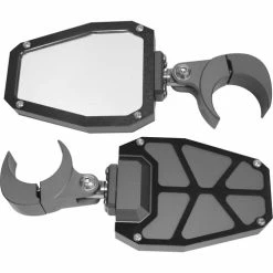 Bracket with breakaway feature allows mirror to push out of the way if hit while moving on the trails.